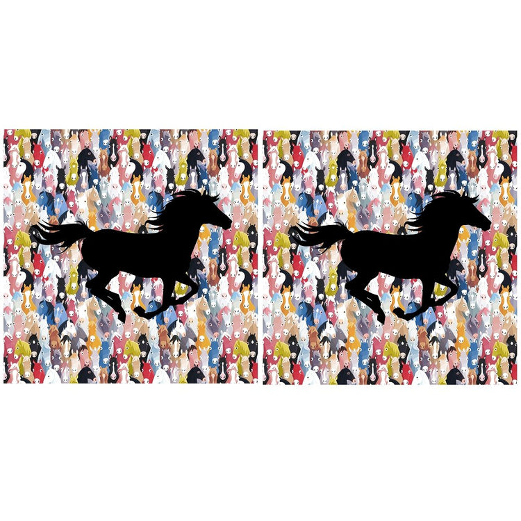 The Running Horse Pillow Panel is a part of the Pillow Panels Fabric Collection printed by Sew Creative Fabrics. Our pillow panels are designed to be extremely simple to put together, some other brands do not provide a 1/4-inch seam allowance, we provide a 2-inch border. Each pillow panel contains 2 pillow panels side by side. You can use the second panel as backing or purchase a yard of Packed Horses Fabric to have the backing the same as the border print.