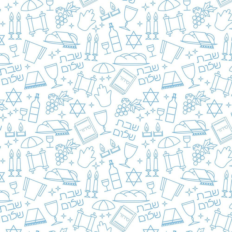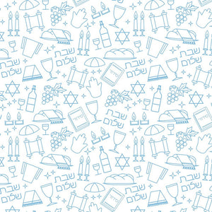 The Sabbath Symbols Fabric is a part of the Judaica Fabric Collection printed by Sew Creative Fabrics. Digitally Printed on 100% cotton.