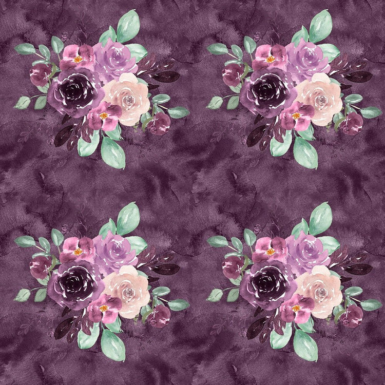 Sangria Dreams Flowers on Grunge Fabric - Purple