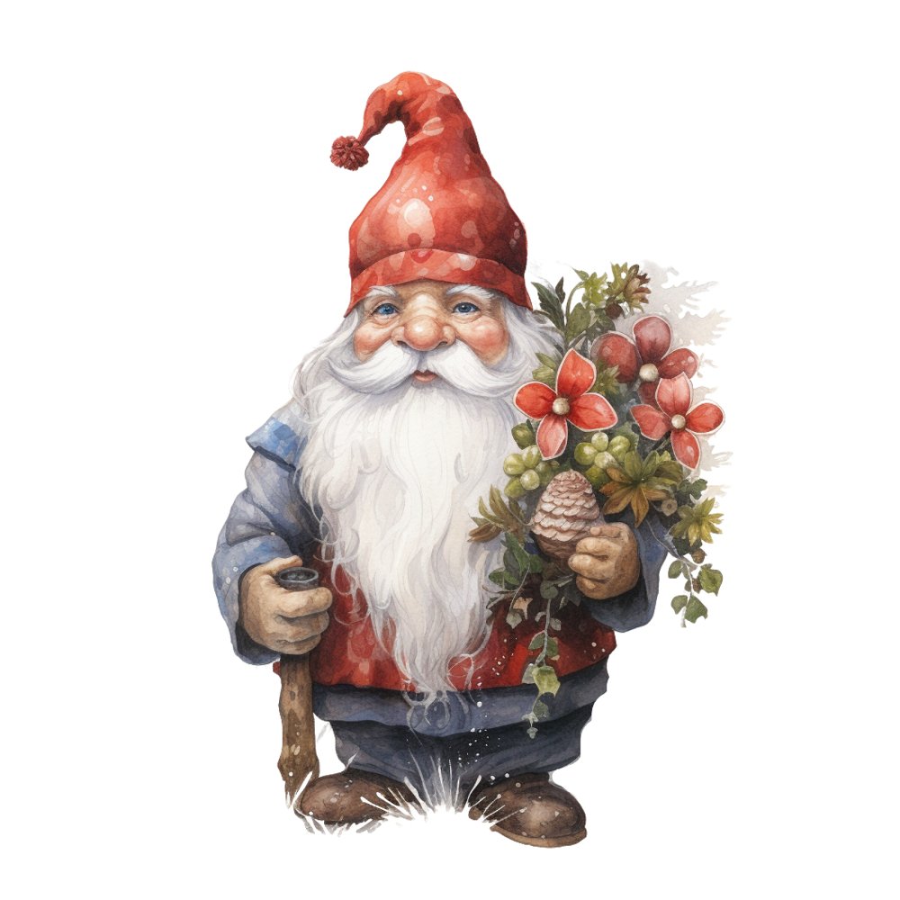 Santa Claus Gnomes & Plants #2 Fabric Panel