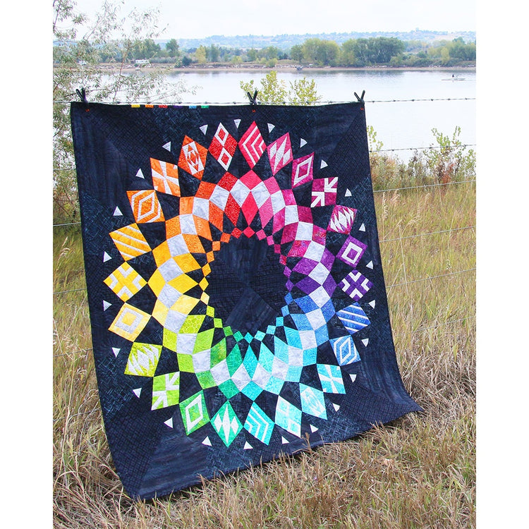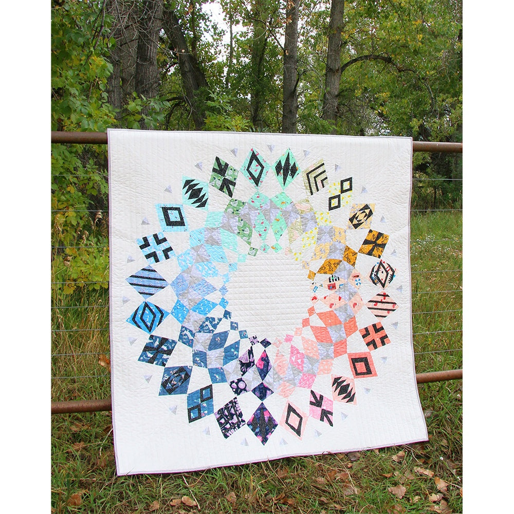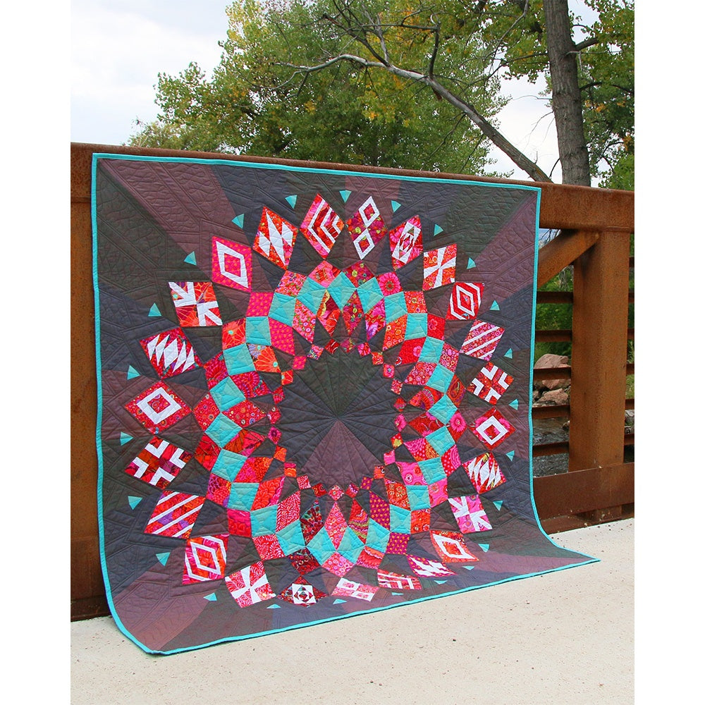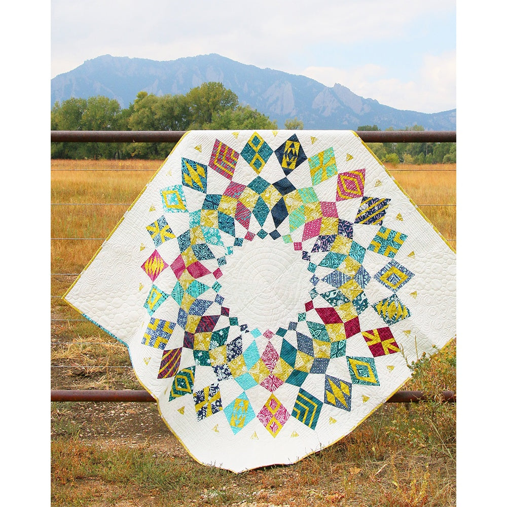 The Cadence Court Quilt Pattern is a new take on a traditional Block-of-the-Month style quilt! This quilt book features 12 different wedge designs, each repeated twice, that make up a contemporary circular design. The Cadence Court Quilt finishes to 60" square. The book includes full-size foundation patterns and templates, paper-piecing instructions, a coloring sheet, a swatch sheet, eight different quilt colorways to give you boundless ideas, and more!
