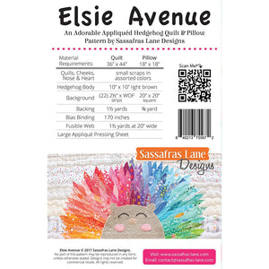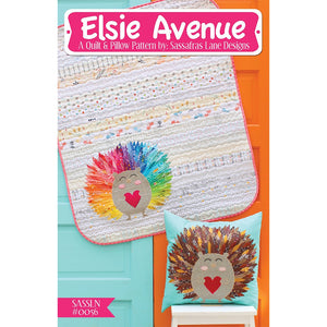 The Elsie Avenue Quilt and Pillow Pattern from Sassafras Lane Designs features an adorable hedgehog suitable for all ages. This easy appliqued hedgehog can be used for a mini-quilt or pillow. The quilt finishes to 36" by 44," and the pillow measures 18" square. To create the hedgehog's spikes, you can use colorful scraps or stick with more realistic colors. Detailed instructions and a list of recommended materials are included with the Elsie Avenue Quilt and Pillow Pattern.