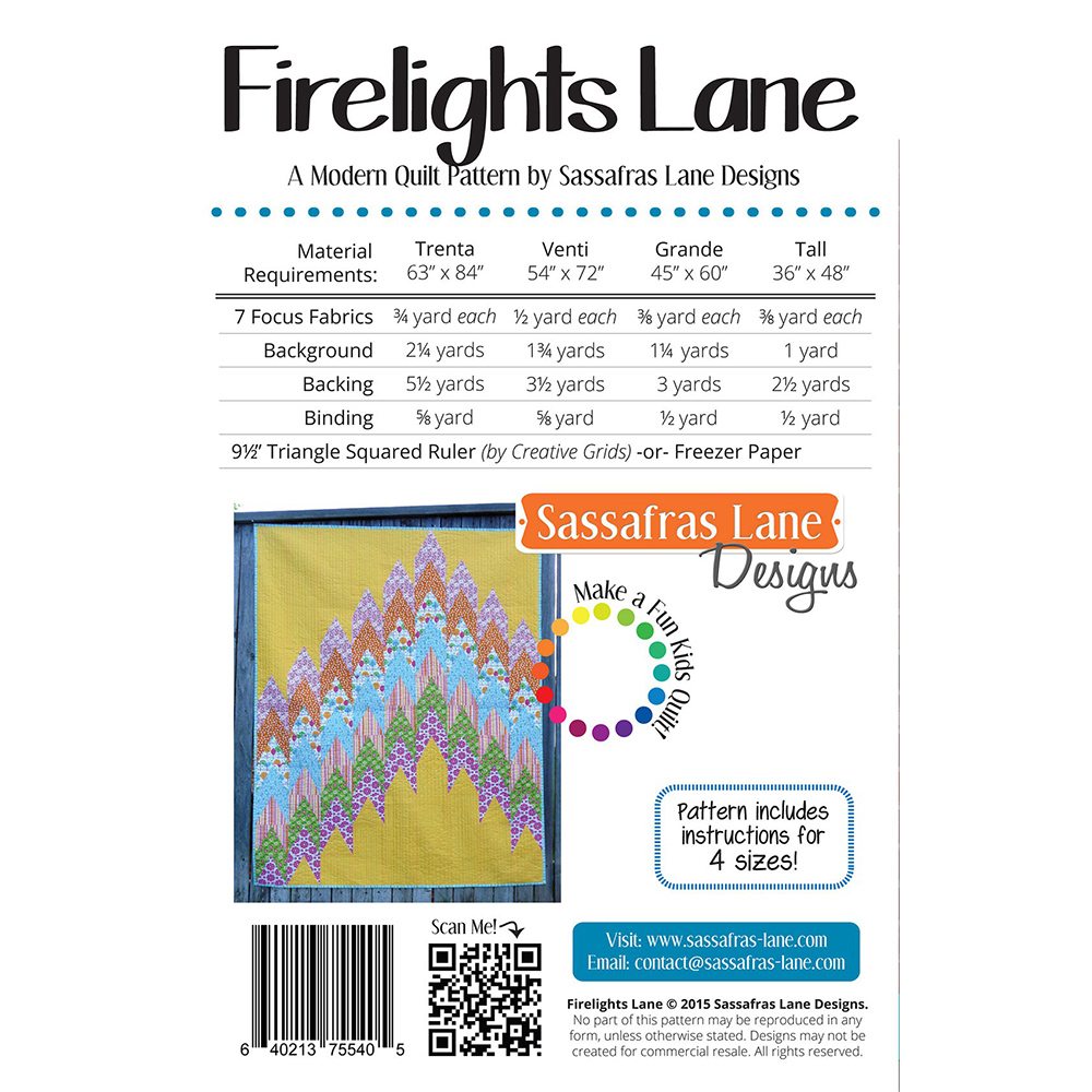 Sassafras Lane Designs, Firelights Lane Quilt Pattern Details