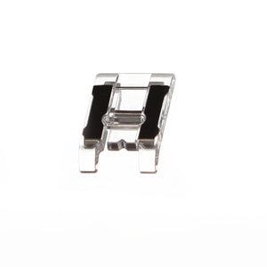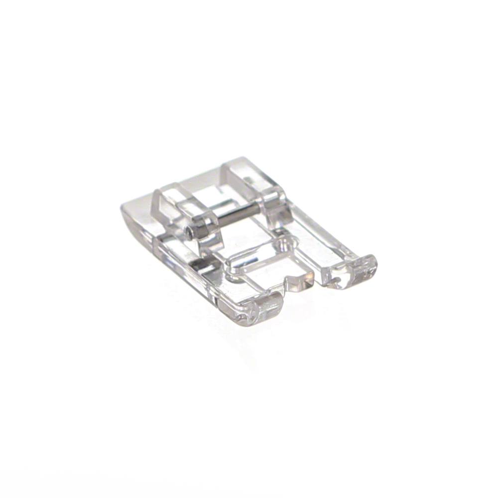 For sewing dense zigzag stitching. The bottom of the foot is beveled for smooth delivery of thread when sewing decorative or sating stitches.