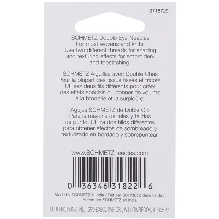 Double Eye Needle, Schmetz (5pk) Size 80/12 Details