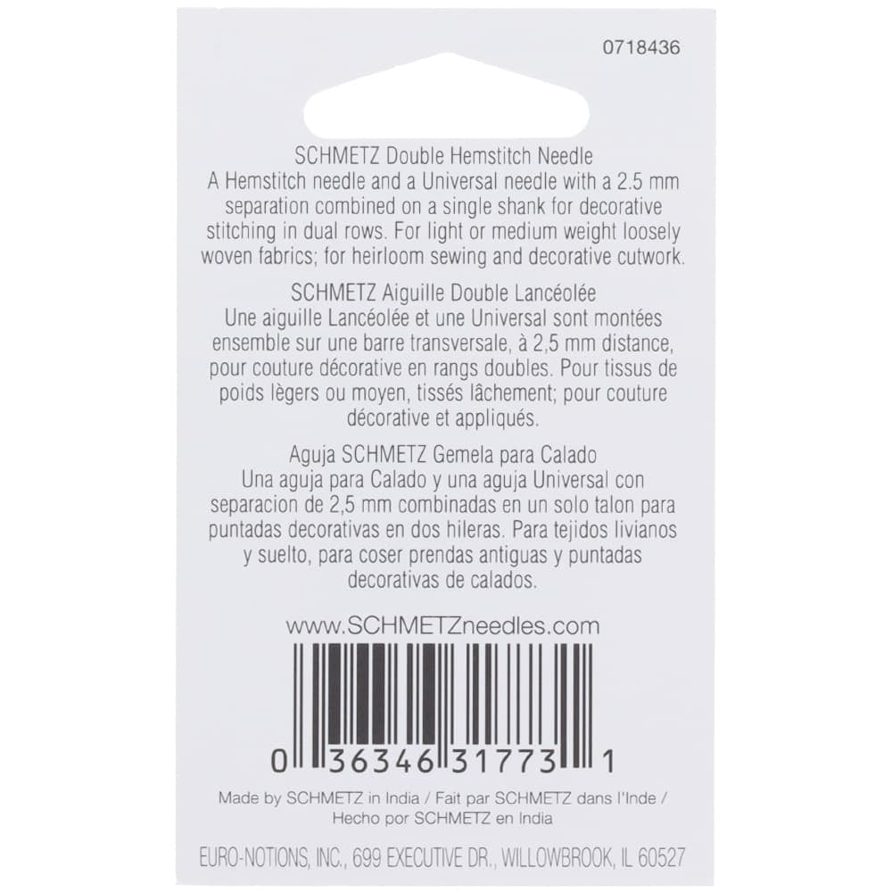 Double Hemstitch Needle, Schmetz (1pk) Details