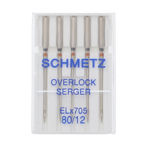 Schmetz ELx705 Overlock Serger Needles have a regular point and are designed to use in electronic multi-purpose sergers that do overlock, cover, safety, and mock safety stitches. This needle has a long groove on both the front and back and a slightly larger scarf with a light ballpoint. Not suitable for use in normal home sewing machines or embroidery machines. Consult your manual for the proper needle selection for your brand and model number.