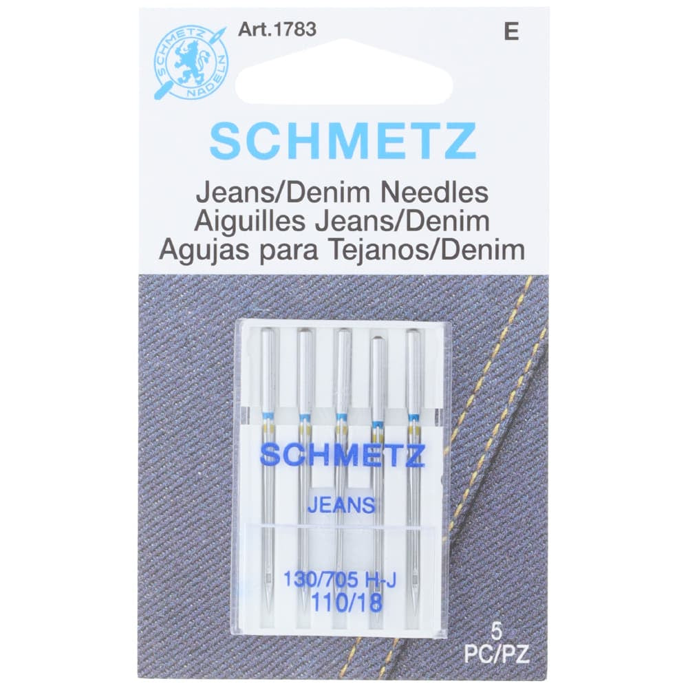Schmetz 130/705H-J Jeans/Denim Needles have a modified, medium ballpoint tip and a reinforced blade that makes this needle excellent for penetrating denim, extra thick woven fabrics, or quilts with minimum deflection. This superior point design is Schmetz exclusive and reduces the risk of damaged fabric and skipped stitches. The heavier jeans threads work best with the larger needle.