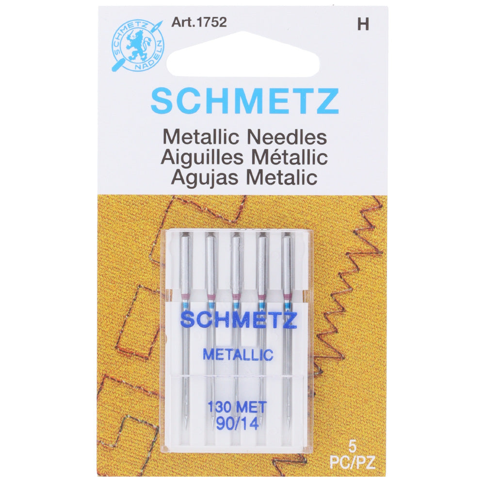 Schmetz 130MET Metallic Needles are a must for sewing with metallic threads. The elongated eye and enlarged groove make this needle immaculate for trouble-free sewing and embroidery with the more fragile metallic threads. It has a double-sized, polished, and Teflon-coated eye to guarantee a smooth flow of the thread. Ever struggled with metallics before and blamed the thread? Try again with this specialty needle for trouble-free embellishment with these stunning but delicate threads. These needles can be used in household sewing machine brands where needles with a flat shank are required.
