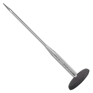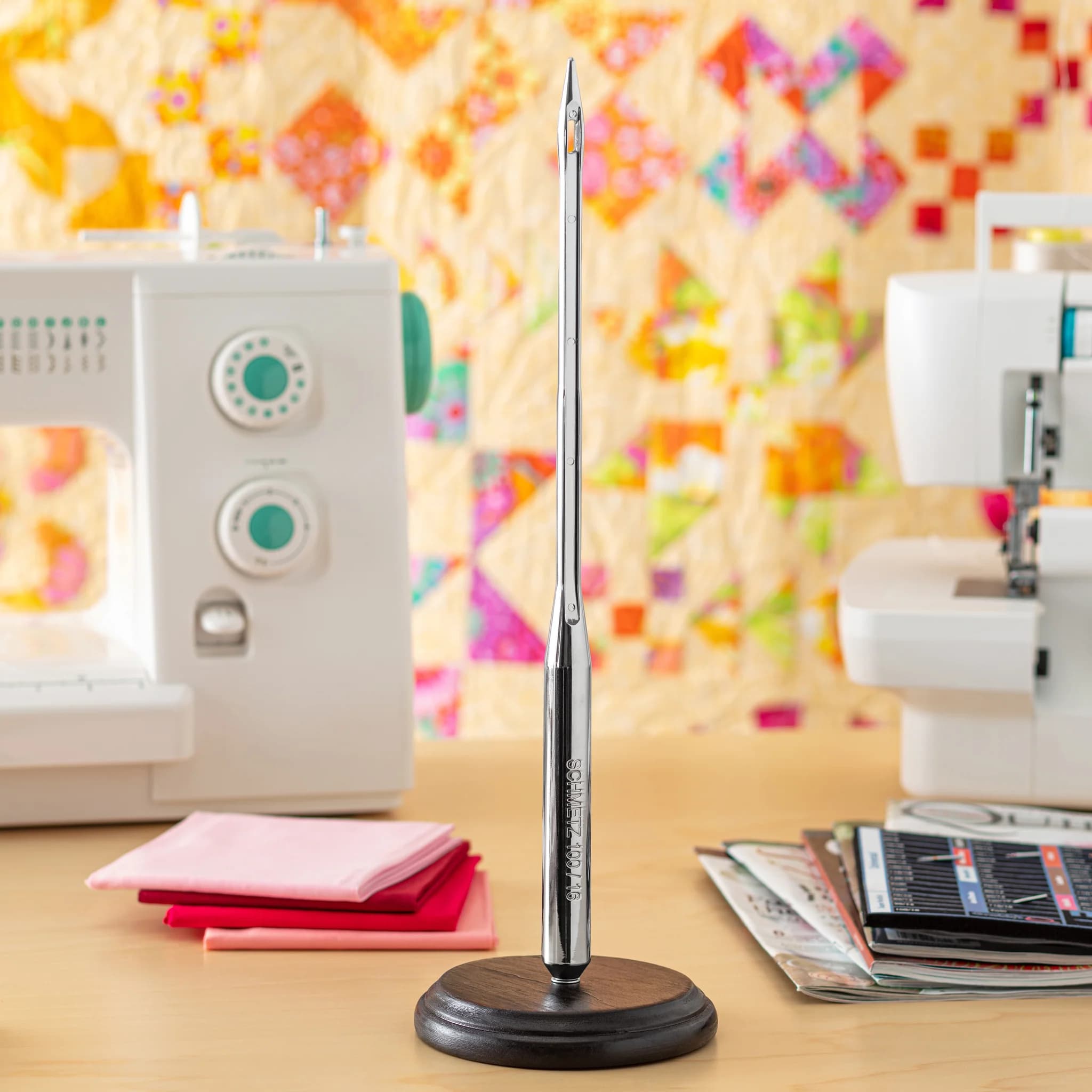 The Schmetz Super Demo Needle is a large-scale model of the famous Schmetz sewing needle! Perfect for class demos or a conversation piece to add to your sewing room decor! The Schmetz Super Demo Needle is a precise replica of what makes each Schmetz needle a staple sewing necessity. At approximately 17" in height with a 5" broad wood base, this Super Demo Needle is 11 times the size of a standard home sewing needle. The Schmetz Super Demo Needle is made of a metal alloy that sits firmly on a wide wood base. (Wing nut included for assembly).
