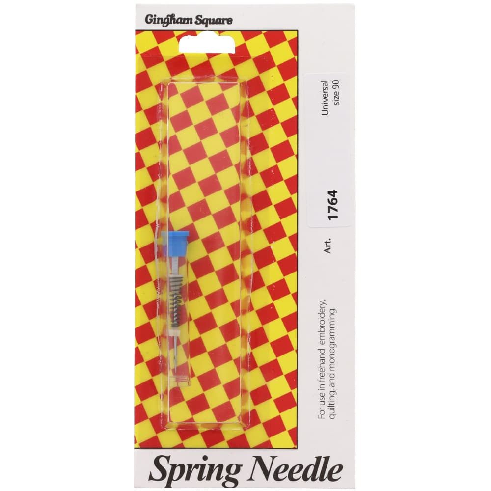 The Schmetz 130/705 H SPR Universal Spring Needle is designed with a wire coil around the shaft and functions as a presser foot that depresses the fabric as the needle goes down and releases the fabric when the needle raises. This Universal Spring Needle allows you to free-motion quilt on your machine and stitch monograms in an embroidery hoop without the need for a presser foot. The built-in spring replaces a traditional darning foot while giving you better visibility while sewing. These needles can be used in household sewing machine brands where needles with a flat shank are required.