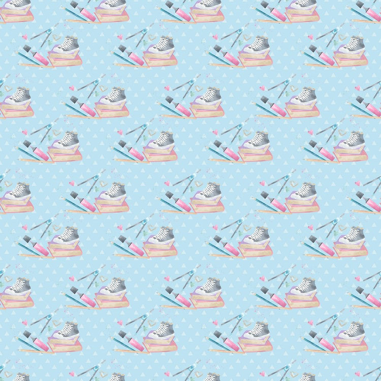 The Blue School Supply Bundle on Triangle Fabric is part of the Back to School Fabric Collection printed by Sew Creative Fabrics. Digitally Printed on 100% cotton and measures 43-44" wide.