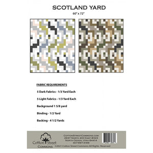 Designed by Marcea Owen, the Scotland Yard Quilt Pattern from Cotton Street Commons makes a sleek and modern quilt! This design is perfect for beginner-level sewists. Mixing up the colors and patterns makes it easy to customize. Includes instructions to create a finished quilt size 60" by 72". The Scotland Yard Quilt Pattern has detailed instructions and a suggested list of materials.