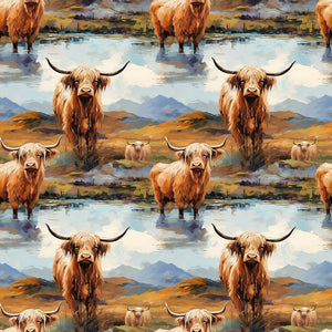The Scottish Highland Cows 10 Fabric is a part of the Scottish Highland Cows Fabric Collection printed by Sewing Parts Online. Digitally Printed on 100% cotton and measures 43-45" wide. Sewing Parts Online prints are only available through Sewing Parts Online, not sold in stores or anywhere else online.