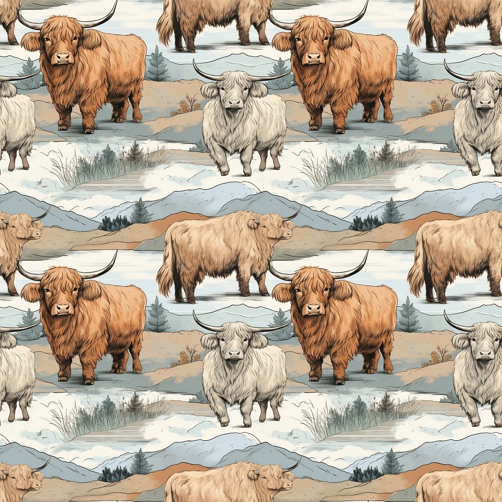 The Scottish Highland Cows 14 Fabric is a part of the Scottish Highland Cows Fabric Collection printed by Sewing Parts Online. Digitally Printed on 100% cotton and measures 43-45" wide. Sewing Parts Online prints are only available through Sewing Parts Online, not sold in stores or anywhere else online.