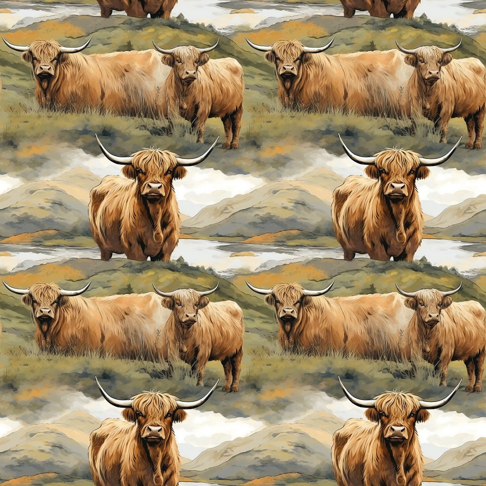 The Scottish Highland Cows 15 Fabric is a part of the Scottish Highland Cows Fabric Collection printed by Sewing Parts Online. Digitally Printed on 100% cotton and measures 43-45" wide. Sewing Parts Online prints are only available through Sewing Parts Online, not sold in stores or anywhere else online.