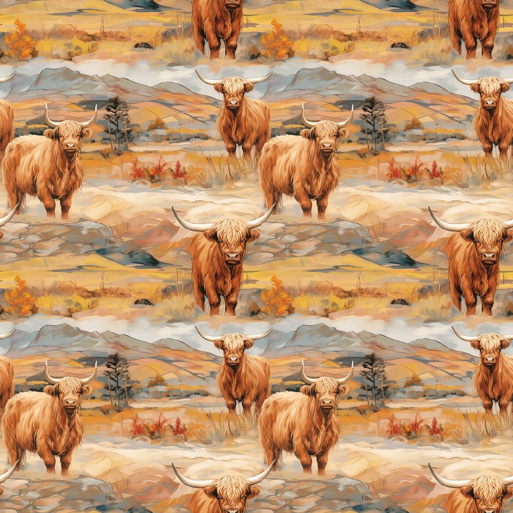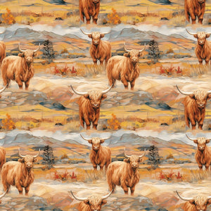 The Scottish Highland Cows 16 Fabric is a part of the Scottish Highland Cows Fabric Collection printed by Sewing Parts Online. Digitally Printed on 100% cotton and measures 43-45" wide. Sewing Parts Online prints are only available through Sewing Parts Online, not sold in stores or anywhere else online.