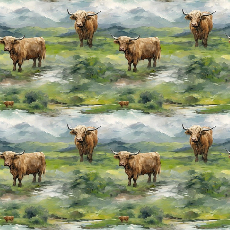 The Scottish Highland Cows 2 Fabric is a part of the Scottish Highland Cows Fabric Collection printed by Sewing Parts Online. Digitally Printed on 100% cotton and measures 43-45" wide. Sewing Parts Online prints are only available through Sewing Parts Online, not sold in stores or anywhere else online.