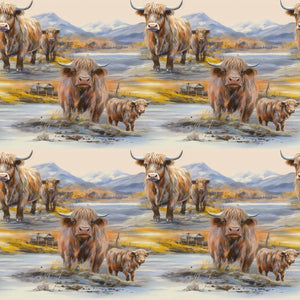 The Scottish Highland Cows 6 Fabric is a part of the Scottish Highland Cows Fabric Collection printed by Sewing Parts Online. Digitally Printed on 100% cotton and measures 43-45" wide. Sewing Parts Online prints are only available through Sewing Parts Online, not sold in stores or anywhere else online.