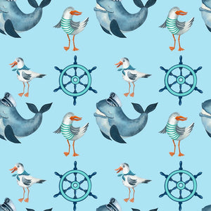 The Sea Gnomes Sea Gulls Fabric is part of the Sea Gnomes Fabric Collection printed by Sew Creative Fabrics. Digitally Printed on 100% cotton.