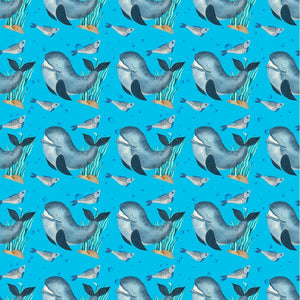 The Sea Gnomes Whales and Fish Fabric is part of the Sea Gnomes Fabric Collection printed by Sew Creative Fabrics. Digitally Printed on 100% cotton.