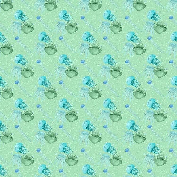 The Green Sea Jellyfish Fabric is part of the Sea Jellyfish Fabric Collection printed by Sew Creative Fabrics. Digitally Printed on 100% cotton.