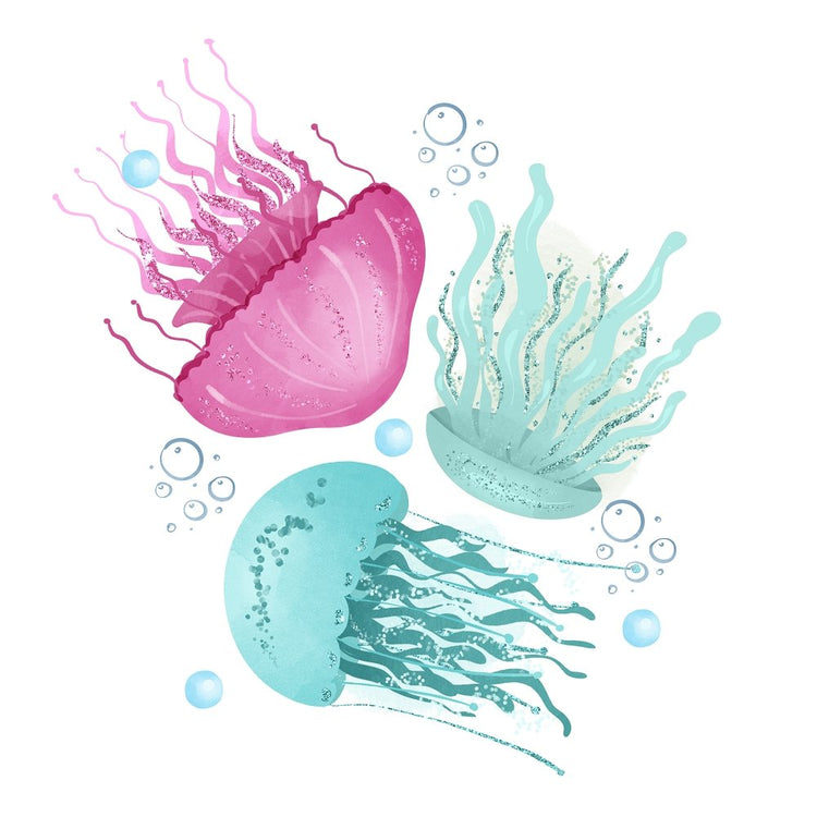 The Sea Jellyfish Smack 1 Fabric Panel is part of the Sea Jellyfish Fabric Collection printed by Sew Creative Fabrics. Digitally Printed on 100% cotton. This fabric panel is available in 6 different sizes: