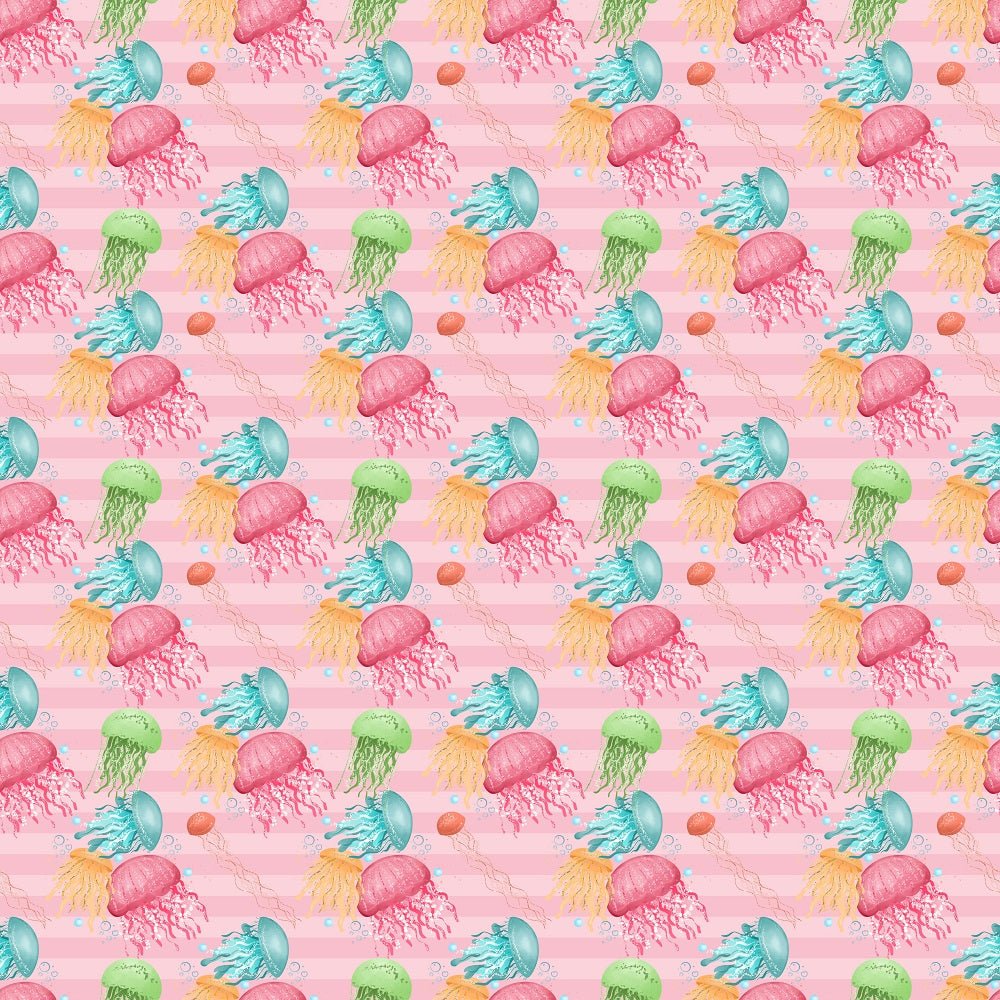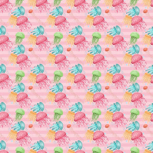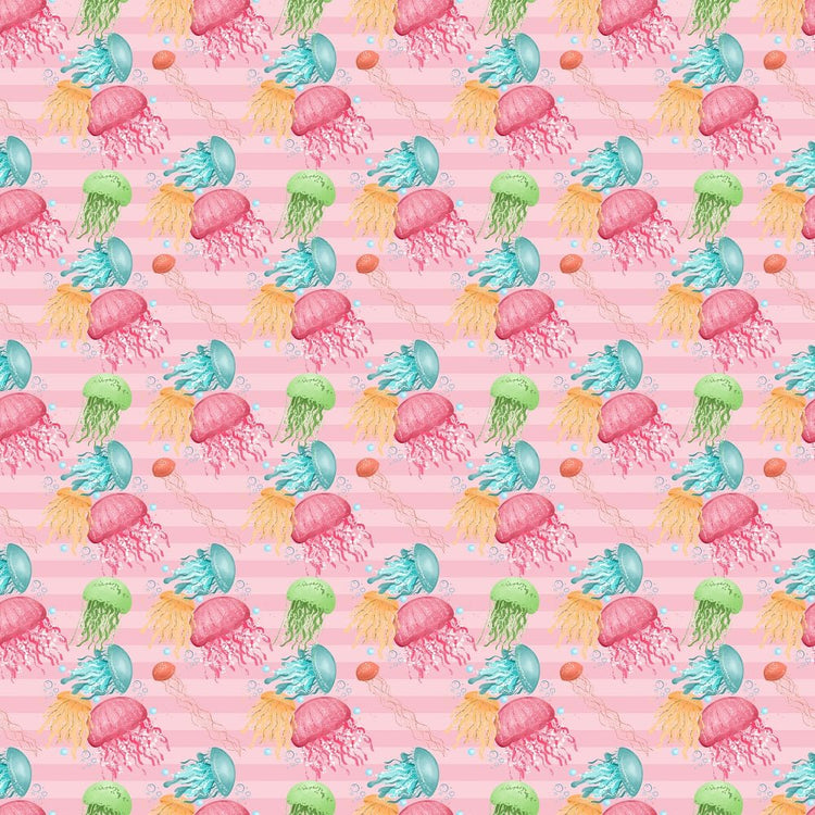 The Pink Sea Jellyfish Smack Stripe Fabric is part of the Sea Jellyfish Fabric Collection printed by Sew Creative Fabrics. Digitally Printed on 100% cotton.