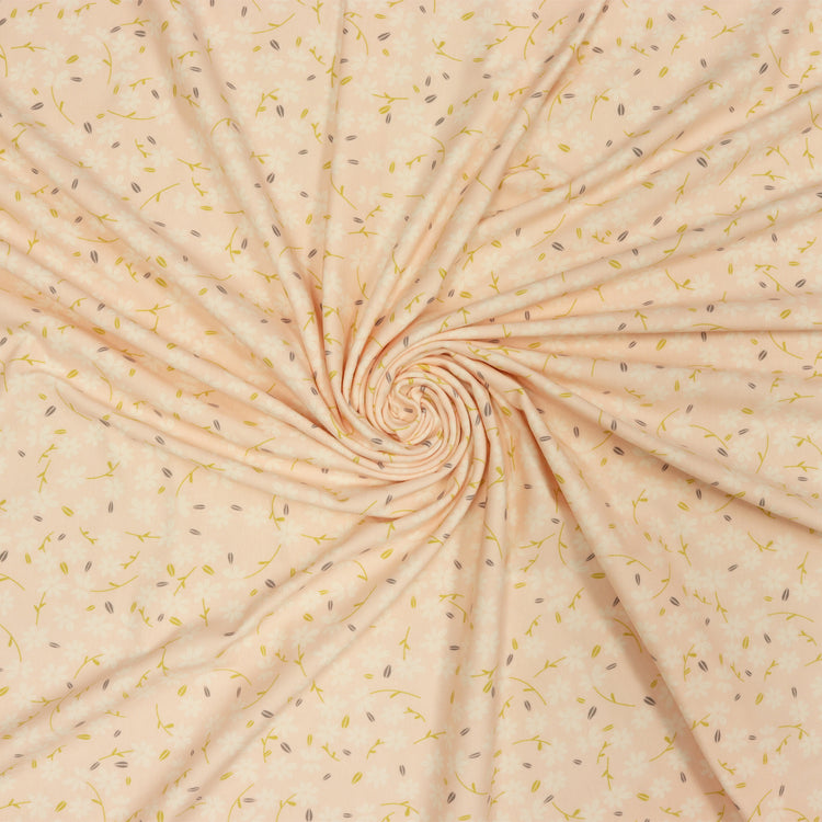 Delicate and graceful, Season Waltz in Knit captures the peaceful rhythm of winter with its soft palette and charming floral scatter. Designed by Amy Sinibaldi as part of the Little Town collection, this fabric evokes the quiet beauty of snowy days and cozy moments indoors. Set against a warm blush background, dainty white flowers and golden sprigs dance across the surface like petals swirling on a frosty breeze. The subtle design is both playful and refined, offering a gentle nod to nature's elegance in every stitch. Measuring approximately 58" wide and made from 95% cotton and 5% spandex, this knit provides the perfect balance of softness, stretch, and breathability.
