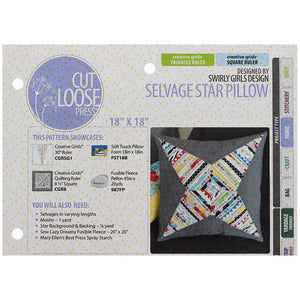 This unique pattern allows you to use every piece of fabric including the selvage edge! The Selvage Star Pillow Pattern, from Cut Loose Press, makes 18-inch square pillowcases. This pattern is made easy with the help of two Creative Grids Rulers (sold separately). The 30 Degree Ruler makes it easy to cut perfect angles while the 8-1/2in square ruler gives you perfectly trimmed blocks.