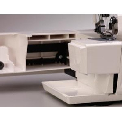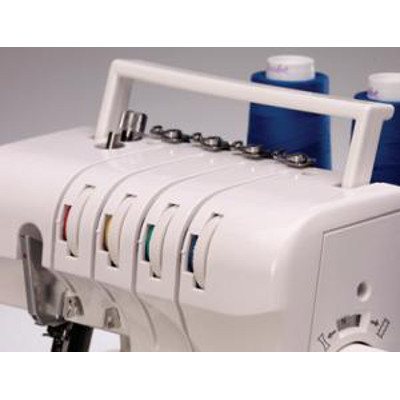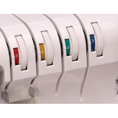 - 4/3/2 color-coded EZ threading, differential feed, free arm, adjustable stitch length and width