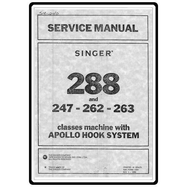 Service Manual, Singer 262 Details
