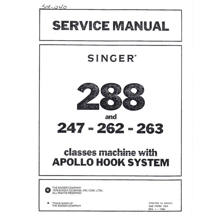 Singer 288 Sewing Machine Service Manual, 28 Pages.