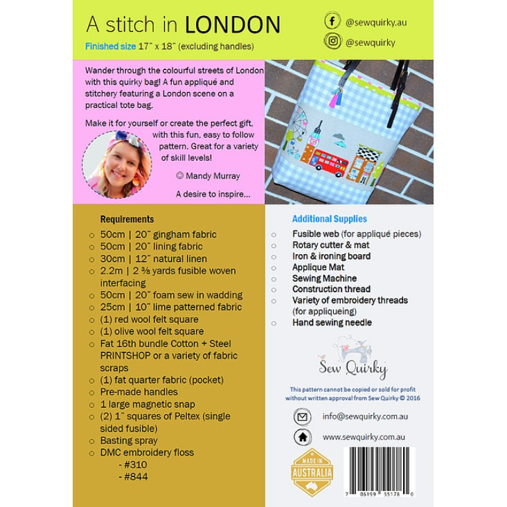 Sew Quirky, A Stitch in London Pag Pattern Details