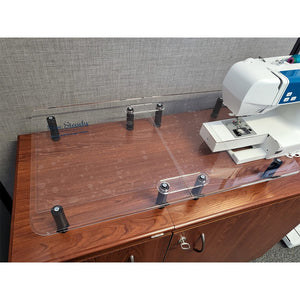 Sew Steady's Clear Advantage Glider is a must-have tool for free motion quilting on your extension table, ruler bases, and cabinet inserts. Grid Gliders have micro-suction technology that clings to your sewing machine's bed and extension table. The surface is slick, allowing materials to glide effortlessly over it. This clear 12″ by 20″ polyester glider includes a cutting guide to create your bobbin access. To help maintain your Ruler Work Glider, it's recommended that you clean it with warm water and allow it to air dry. Please note these mats are intended to stick to smooth surfaces, like acrylic or smooth plastic. If your table is textured, the mat will not cling either, and you must tape it down.