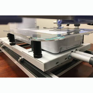 Sew Steady's Ruler Base is ideal for providing extra workspace on your machine while it's sitting on a frame with a platform. This extra space will help provide you with stability when using rulers, guides, and templates. Included with your custom-made ruler base, you get four height-adjustable legs.