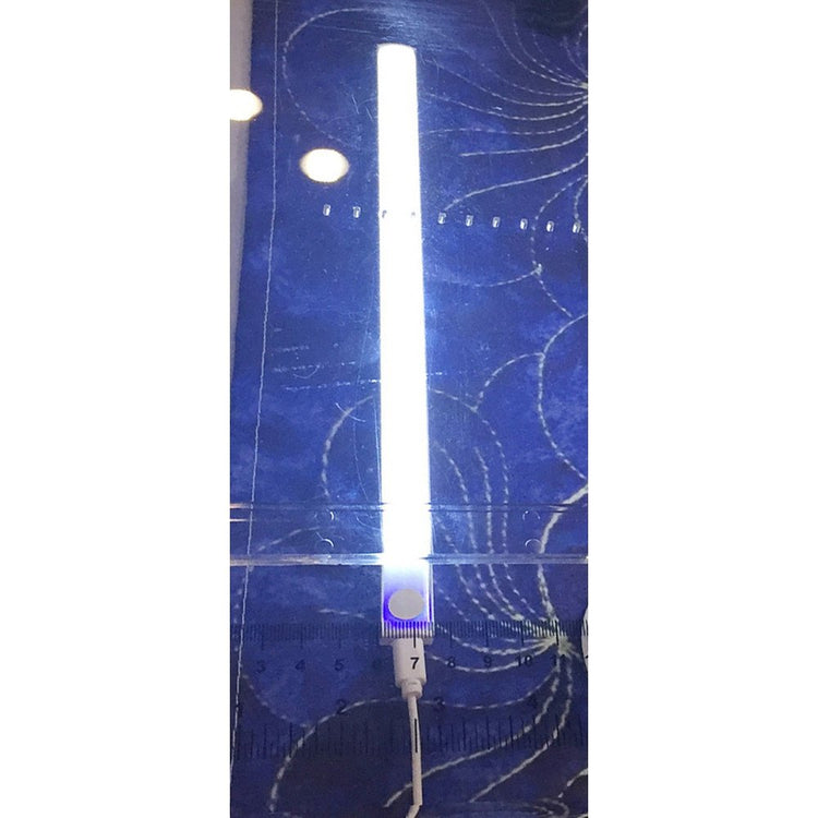 Light up your workspace with a sew Steady Light Stick. Turn your clear tables into your own lightbox. The Light Stick will work with any USB plug so you can plug into a cell charger, your sewing machine, or any other USB outlet. Sew Steady's Light Stick measures 12" long by 1/2" wide