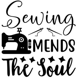 The Black and White Sewing Mends The Soul Fabric Panel is part of the Sew Many Quotes Fabric Collection printed by Sewing Parts Online. This panel is digitally printed on 100% cotton. The fabric panel is available in 6 different sizes: