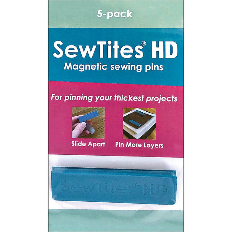 Sewtites Heavy Duty Magnetic Pins are used in place of pins to hold heavy fabrics together more efficiently. These small magnetic 'pins' snap into place and stay there; even on thick fabrics! Using Sewtites Magnetic Pins eliminates pinholes in your sewing projects. Snap your Sewtites Heavy Duty Magnetic Pins into place and sew along the edge for perfectly straight stitches. Each package contains five pins.