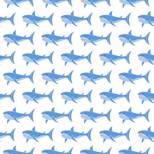 The White Sharks Swimming Fabric is printed by Sew Creative Fabrics. Digitally Printed on 100% cotton.