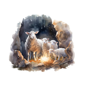 The Sheep & Lamb in Cave Fabric Panel is a part of the The Birth of Jesus Fabric Collection printed by Sewing Parts Online. Digitally Printed on 100% cotton.