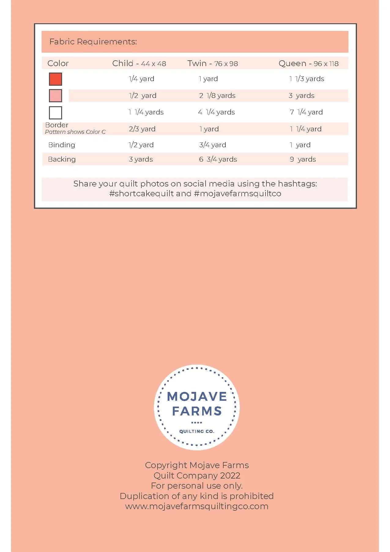 Shortcake Quilt Pattern Details