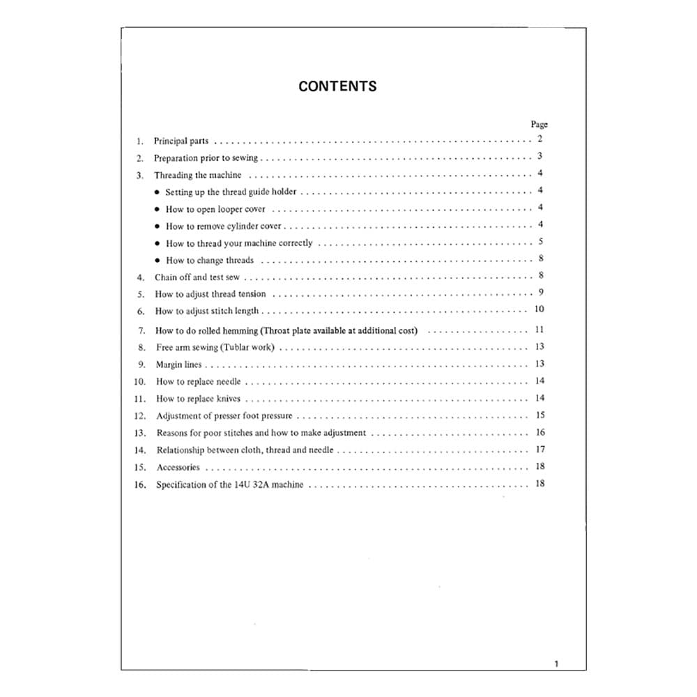 Singer 14U32A Instruction Manual Details