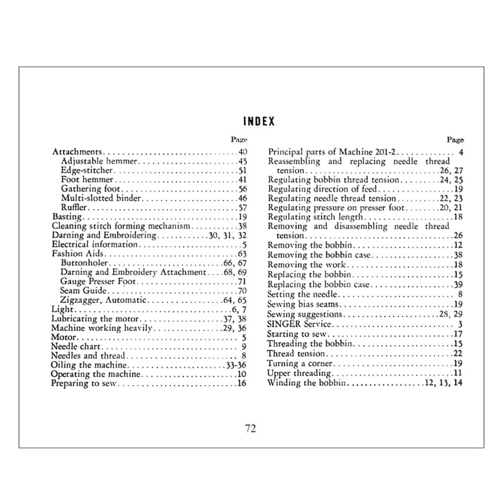 Singer 201-1 Sewing Machine Instruction Manual (Model 201-1) - 76 Pages. Lost your sewing machine's manual? We've got you covered! This instruction manual is the ultimate guide to unlock the full potential of your Singer 201-1. No more confusion or frustration—just clear, concise instructions right at your fingertips. What's inside? Everything you need to know from setting up to mastering your sewing machine and all its features. The physical copy of the instruction manual is a soft-cover printed photocopy.