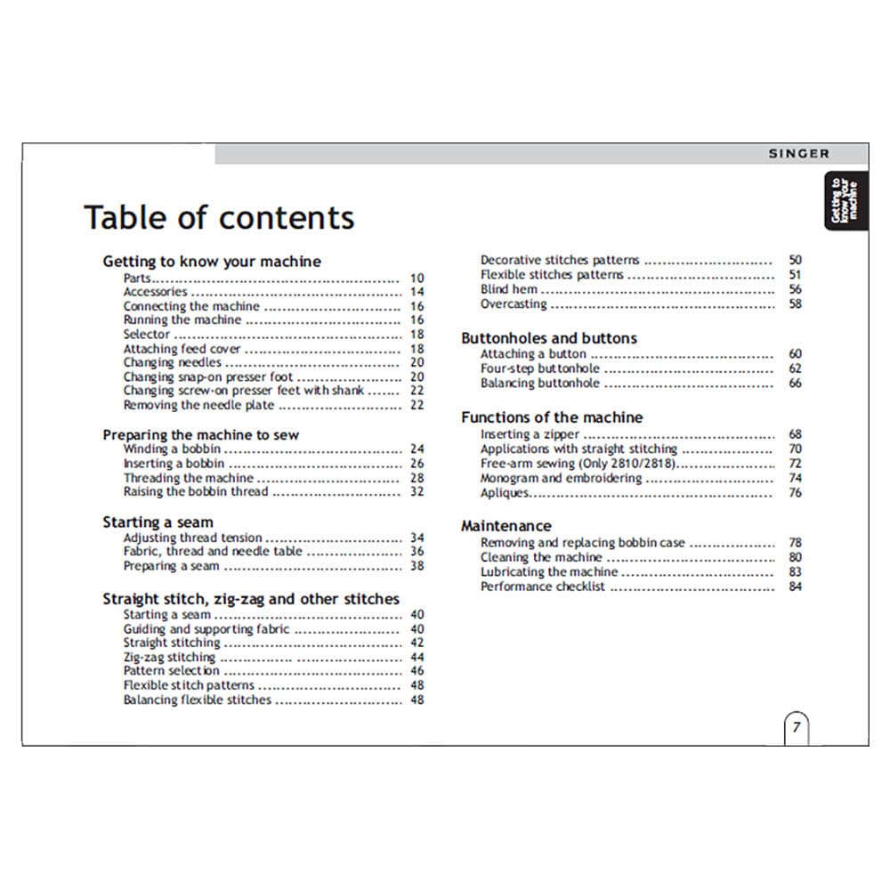 Singer 2818 Sewing Machine Instruction Manual (Model 2810/2818/2860/2868) - 48 Pages. Lost your sewing machine's manual? We've got you covered! This instruction manual is the ultimate guide to unlock the full potential of your Singer 2818. No more confusion or frustration—just clear, concise instructions right at your fingertips. What's inside? Everything you need to know from setting up to mastering your sewing machine and all its features. The physical copy of the instruction manual is a soft-cover printed photocopy.