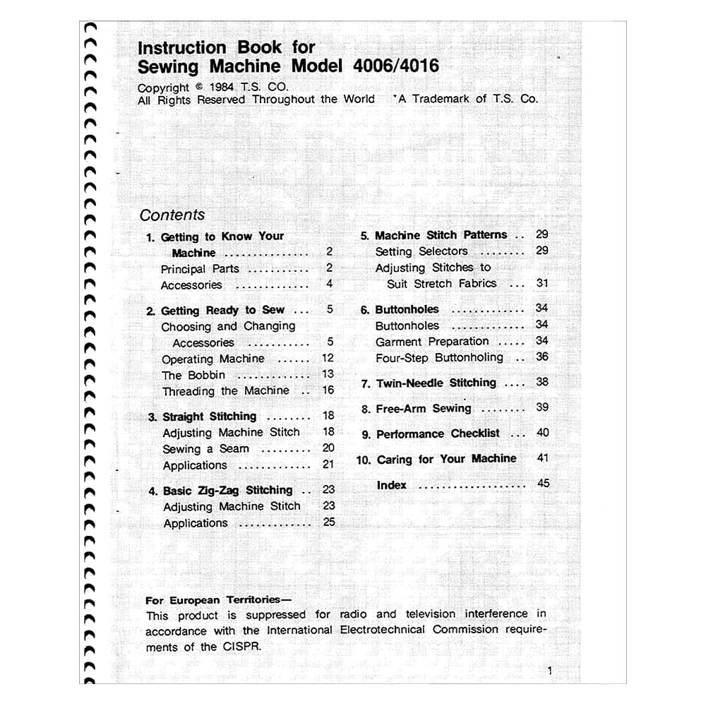 Singer 4005 Instruction Manual Details
