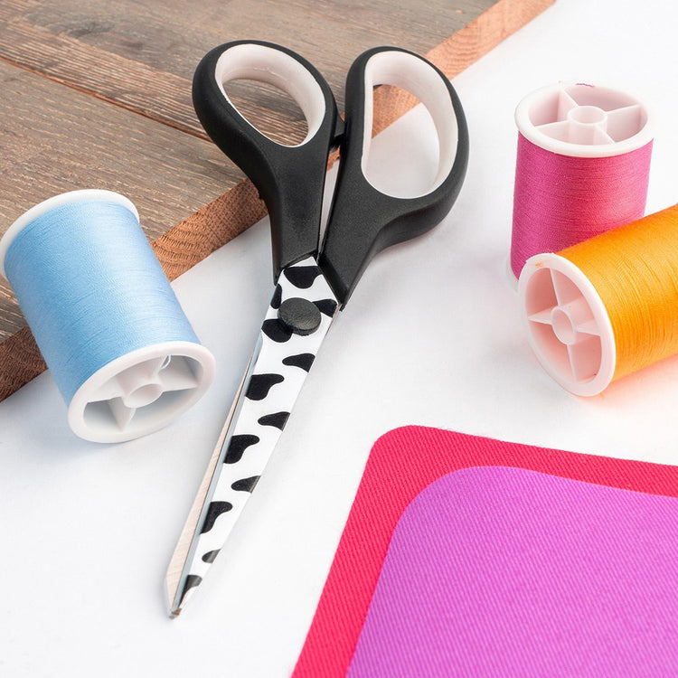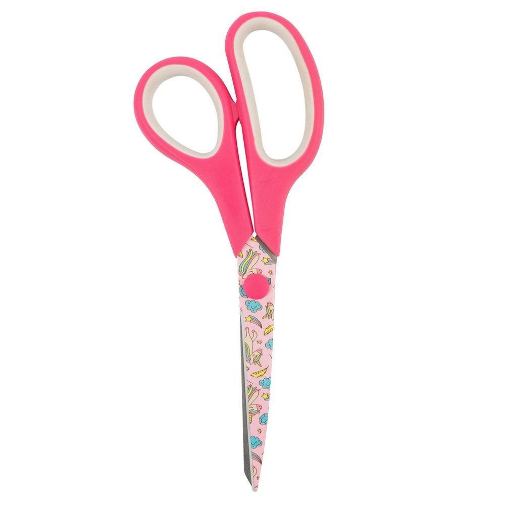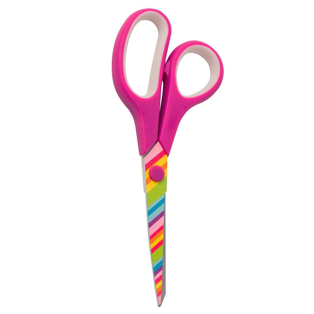 Their stainless steel blades are non-stick for smooth cutting of fabrics, crafts, paper, and more. The blades have a whimsical design and coordinating handles. The soft, rubberized handle provides a comfortable grip to reduce hand fatigue.