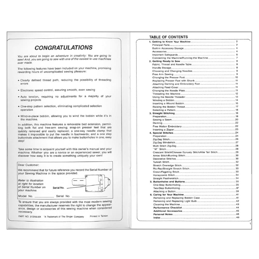 Singer 7043 Instruction Manual Details
