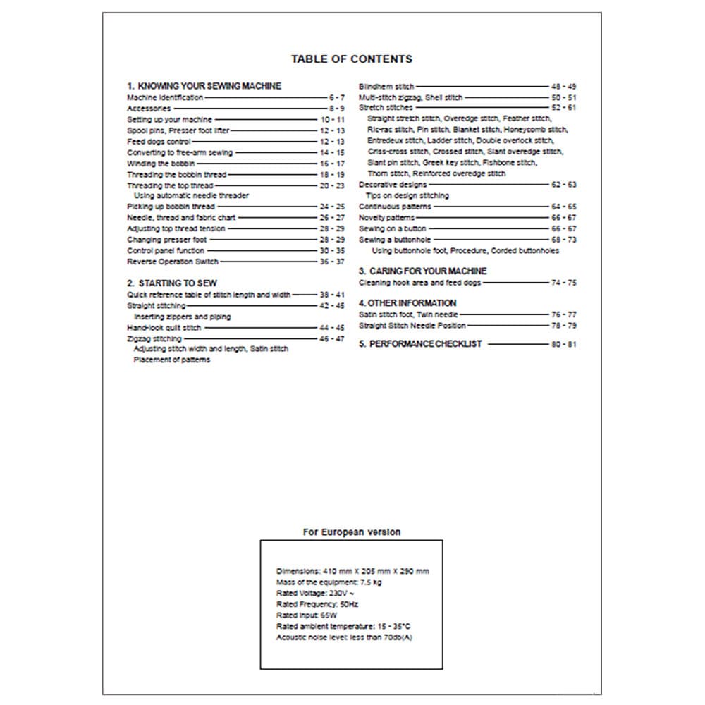 Singer Confidence 7464 Instruction Manual Details