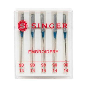 Singer Embroidery Needles feature large eyes, and a unique scarf to give you a top notch finish on your embroidered projects. The design of these needles reduces thread friction, virtually eliminating thread breakage and shredding. These Singer Embroidery Needles, sized at 90/14, are perfect for embroidering mid-weight woven fabrics. The durable plastic case is clearly marked with type and size to help you stay organized.